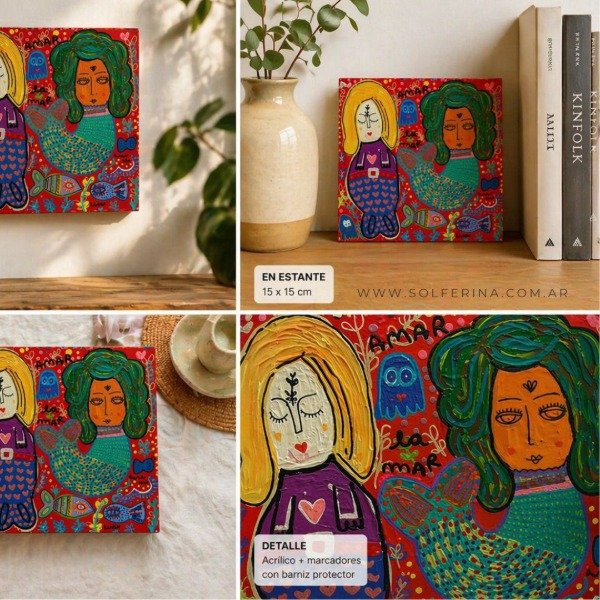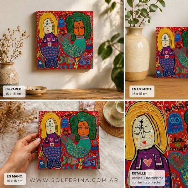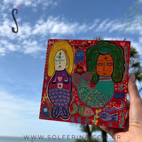 Un fragmento del universo Solferina donde conviven sirenas, peces y formas simbólicas que se entrelazan en el color.